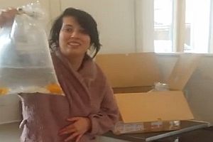 Statt eines bestellten Tisch und bestellter Stühle bekommt diese Frau 40 Tüten mit lebenden Fischen geliefert.