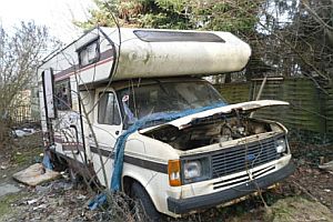 Zwei Nachbarn fegen das Laub von rechts nach links.