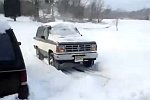 Glücklicher Ausstieg des Fahrers während sich sein Jeep überschlägt.